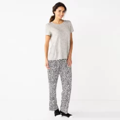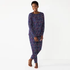 Petite Cuddl Duds 3-pc. Knit Long Sleeve Pajama Top, Banded Bottom Pajama Pants & Scrunchie Set