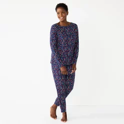 Women’s Cuddl Duds 3-pc. Knit Long Sleeve Pajama Top, Banded Bottom Pajama Pants & Scrunchie Set