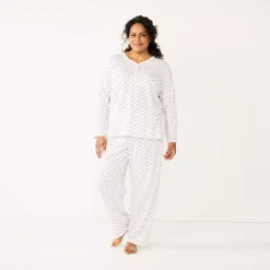 Plus Size Croft & Barrow® Textured Knit Henley Long Sleeve Pajama Top & Pajama Pants Sleep Set
