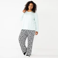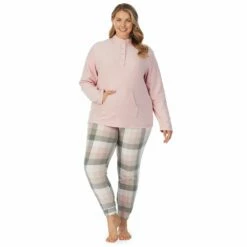 Plus Size Cuddl Duds Fleece Long Sleeve Pajama Top and Banded Bottom Pajama Pants Sleep Set