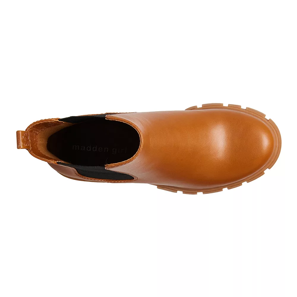 A chunky lug outsole adds a little edge to these madden girl Tessa women’s platform Chelsea boots.