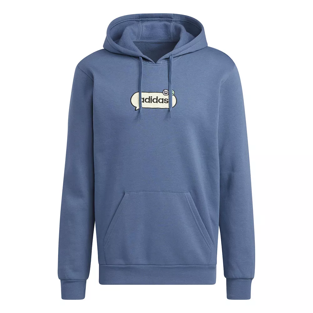 It’s all about the give-and-take. Whether you’re kicking back and sending messages, or buddying up at the gym. This adidas men’s hooded sweatshirt, with its playful emoji-style graphics, will have everyone smiling. Tighten up the hood, and the fleece fabric will keep you cozy from your head to your hands that are wrapped up inside the kangaroo pocket.