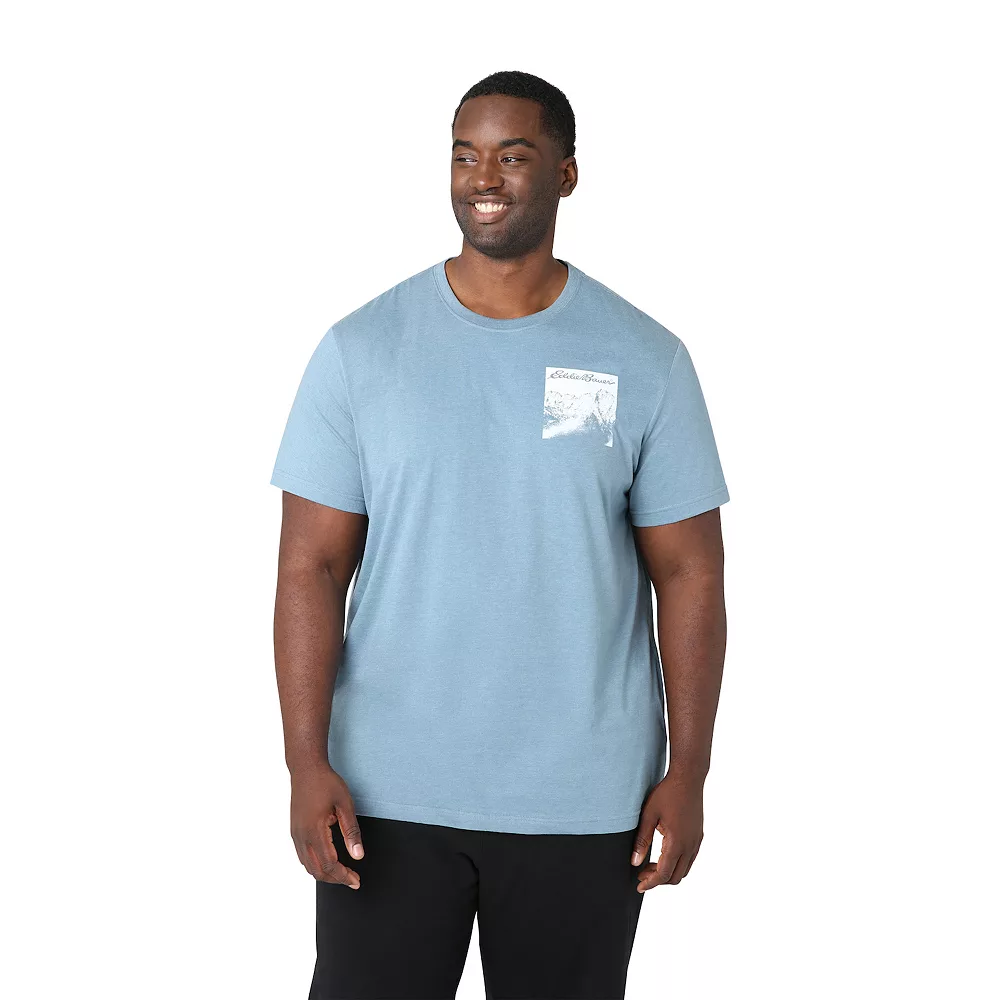 This Eddie Bauer graphic tee raises the bar on comfort and quality. Each shirt is purposely developed using a soft, light weight, cool, and comfortable fabric. It resists shrinking, won’t twist out of shape after washing, and holds its color, even through regular use.