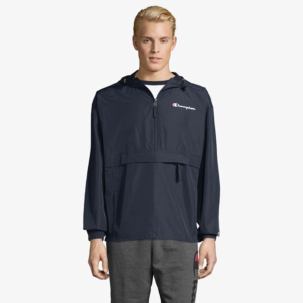 This men’s Champion pull-over jacket is easily packable so you can take it any where.