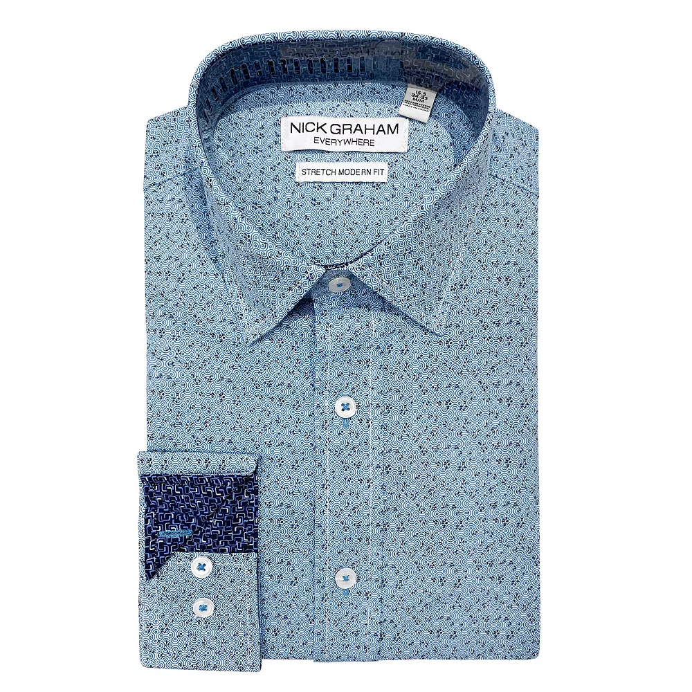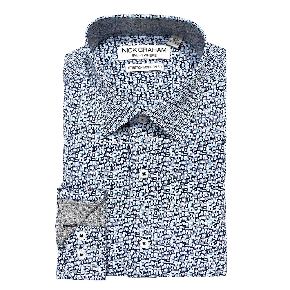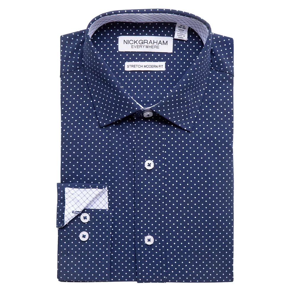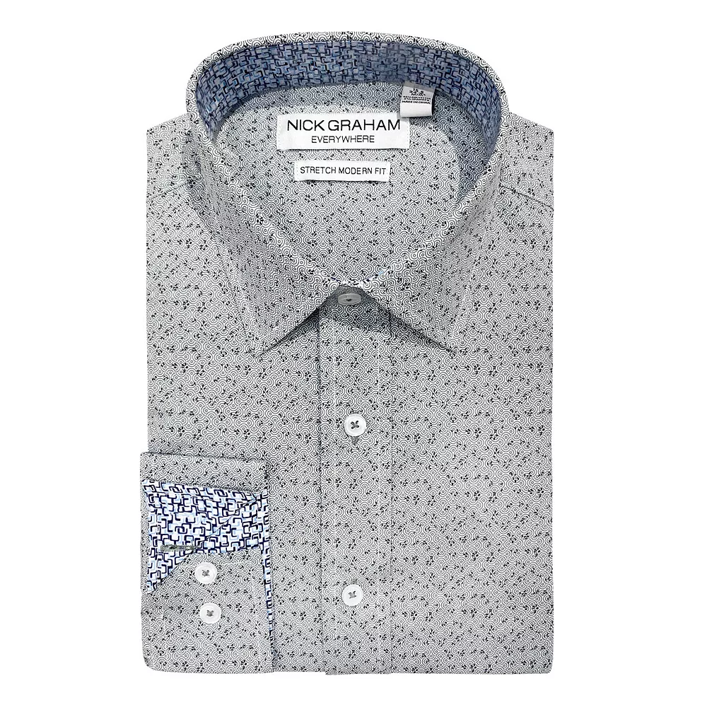Standout style. Separate yourself from the crowd with this contemporary men’s dress shirt from Nick Graham.