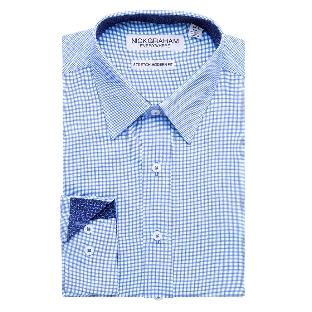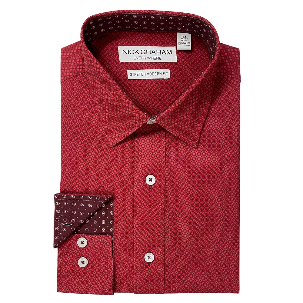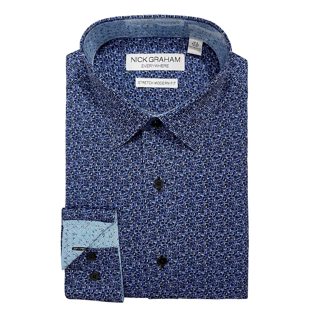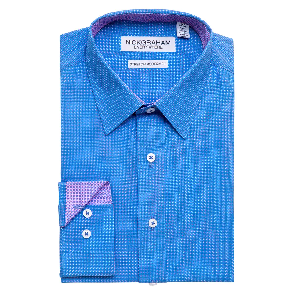 Standout style. Separate yourself from the crowd with this contemporary men’s dress shirt from Nick Graham.
