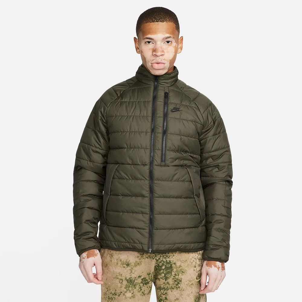 Stay warm and stylish while sporting this men’s Nike Therma-FIT puffer jacket.