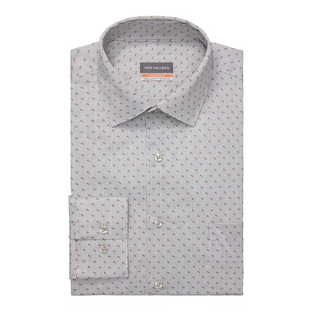 Dress for success. Achieve a sophisticated look at the office or any special event thanks to this stylish men’s dress shirt from Van Heusen.