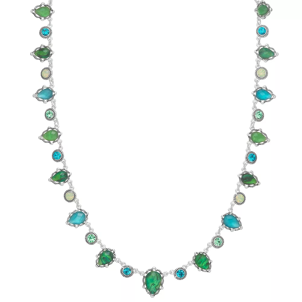 Finish off your ensemble with a pop of color in this multi-color crystal-studded silver tone necklace from Napier.