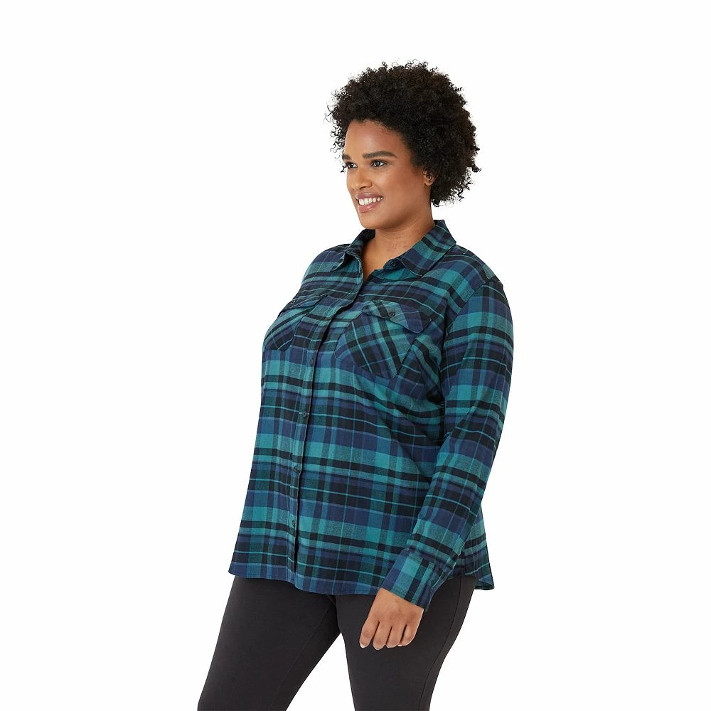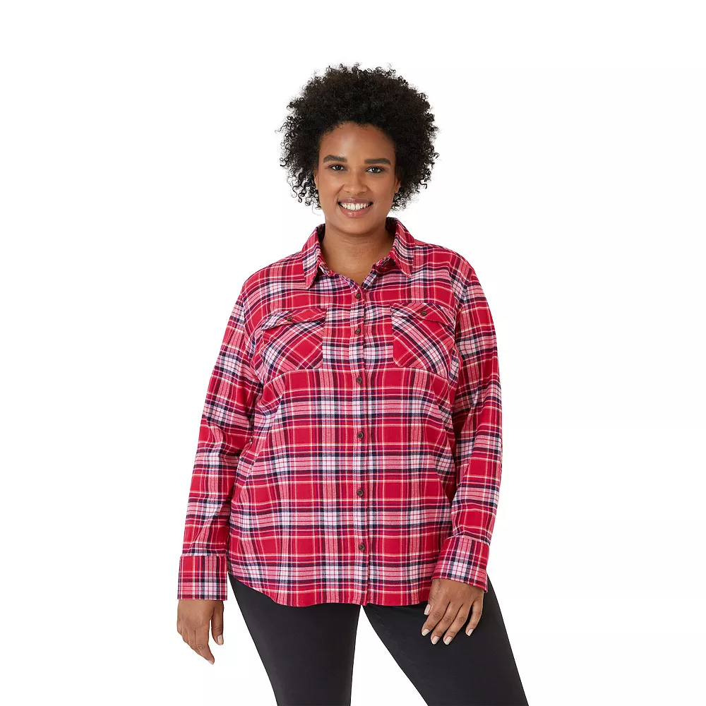 Cozy fall fashion is yours in this women’s Eddie Bauer flannel shirt.