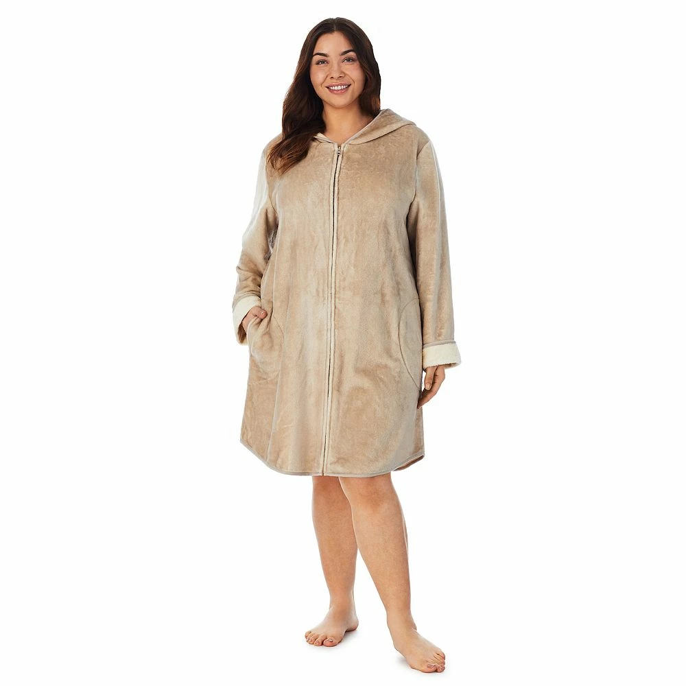 Featuring a cozy double-plush fabric with faux suede accents, this women’s Koolaburra by UGG short zipper robe abounds with luxurious style.