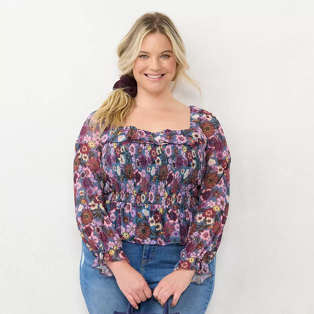 Plus Size LC Lauren Conrad Long Sleeve Smocking Top -Hot Sale Adult Shop 5685710 Blooms Botanical