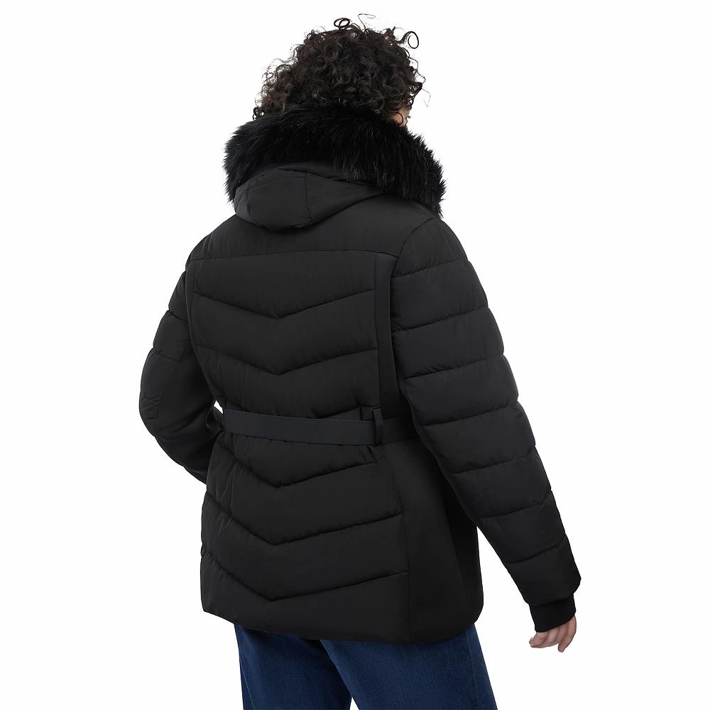 Upgrade your outerwear wardrobe with this women’s London Fog stretchy puffer coat.