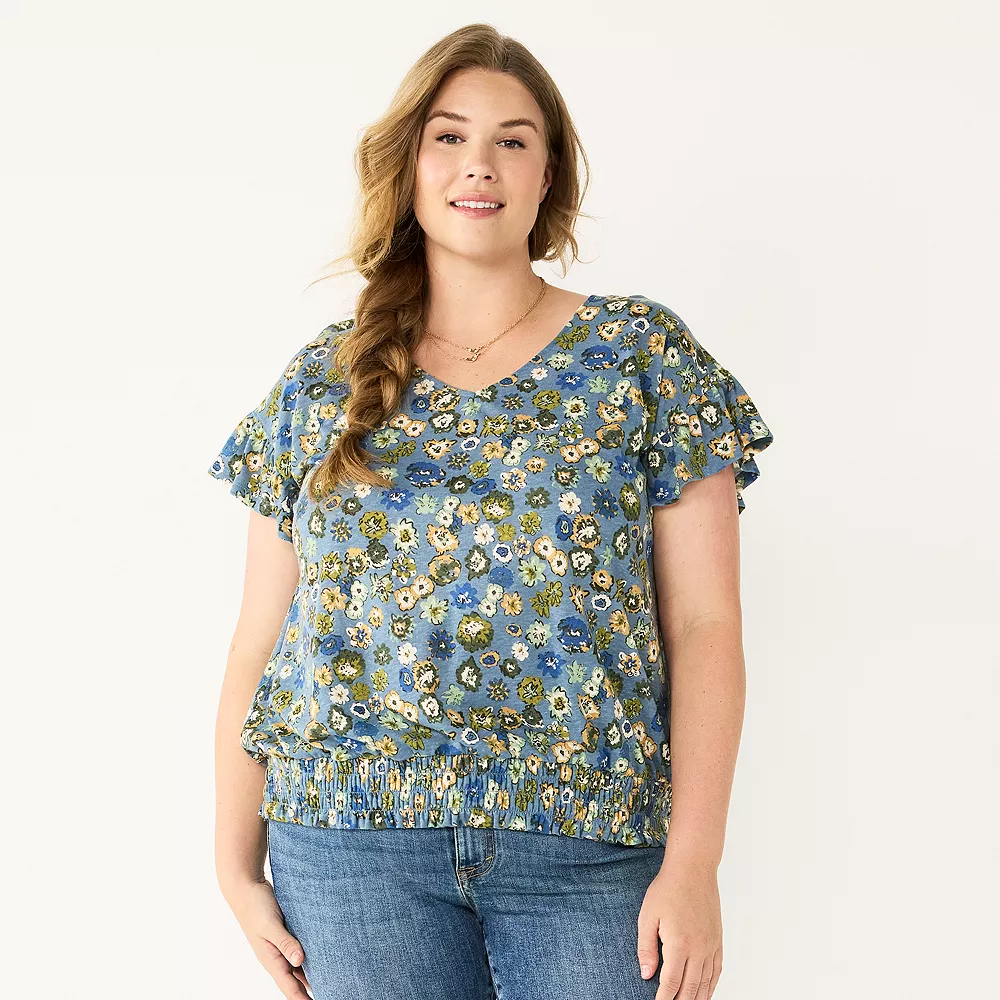 Plus Size Sonoma Goods For Life® Banded Bottom Ruffle Sleeve Top
