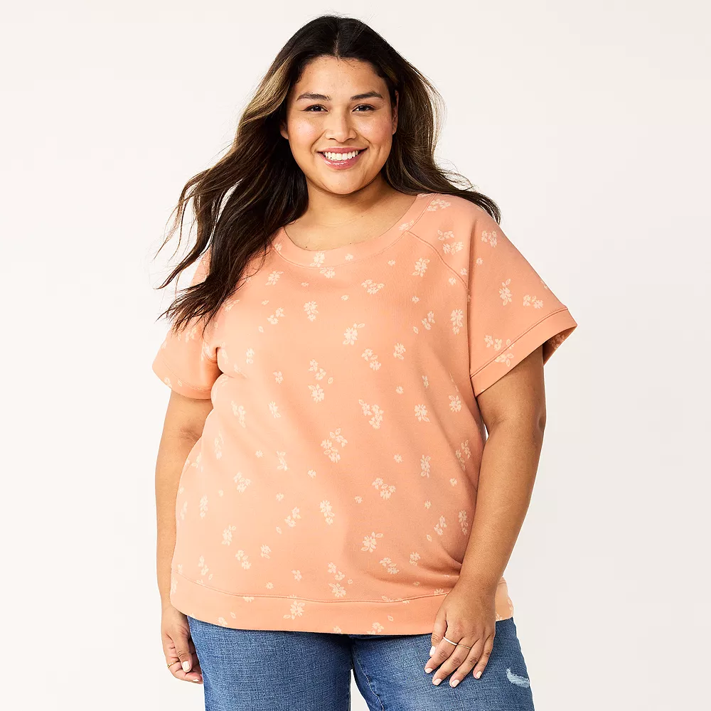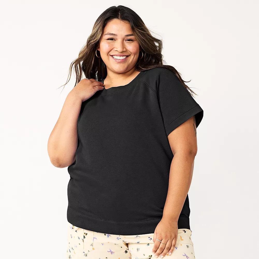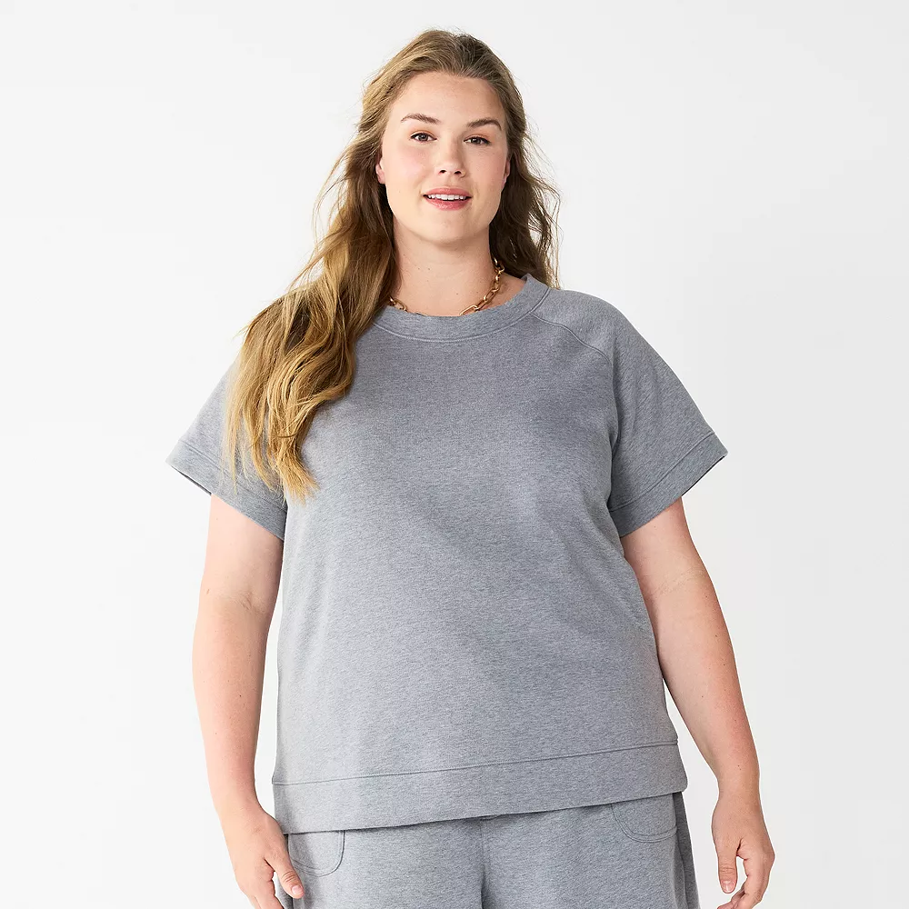 Give yourself a cozy layer with this women’s fleece short sleeve sweatshirt from Sonoma Goods For Life.
