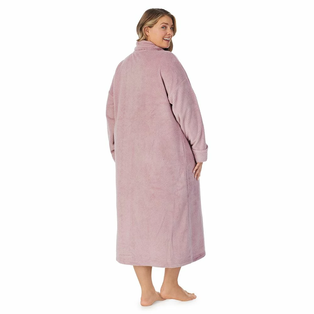 Layer in a luxuriously cozy look with this plush cowlneck zipper robe from Stan Herman.