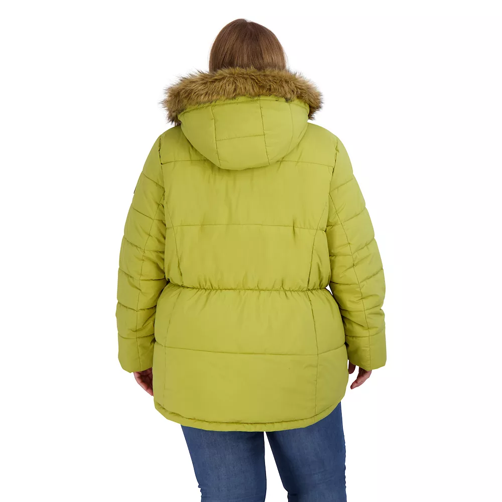 - Removable hood with faux-fur trim