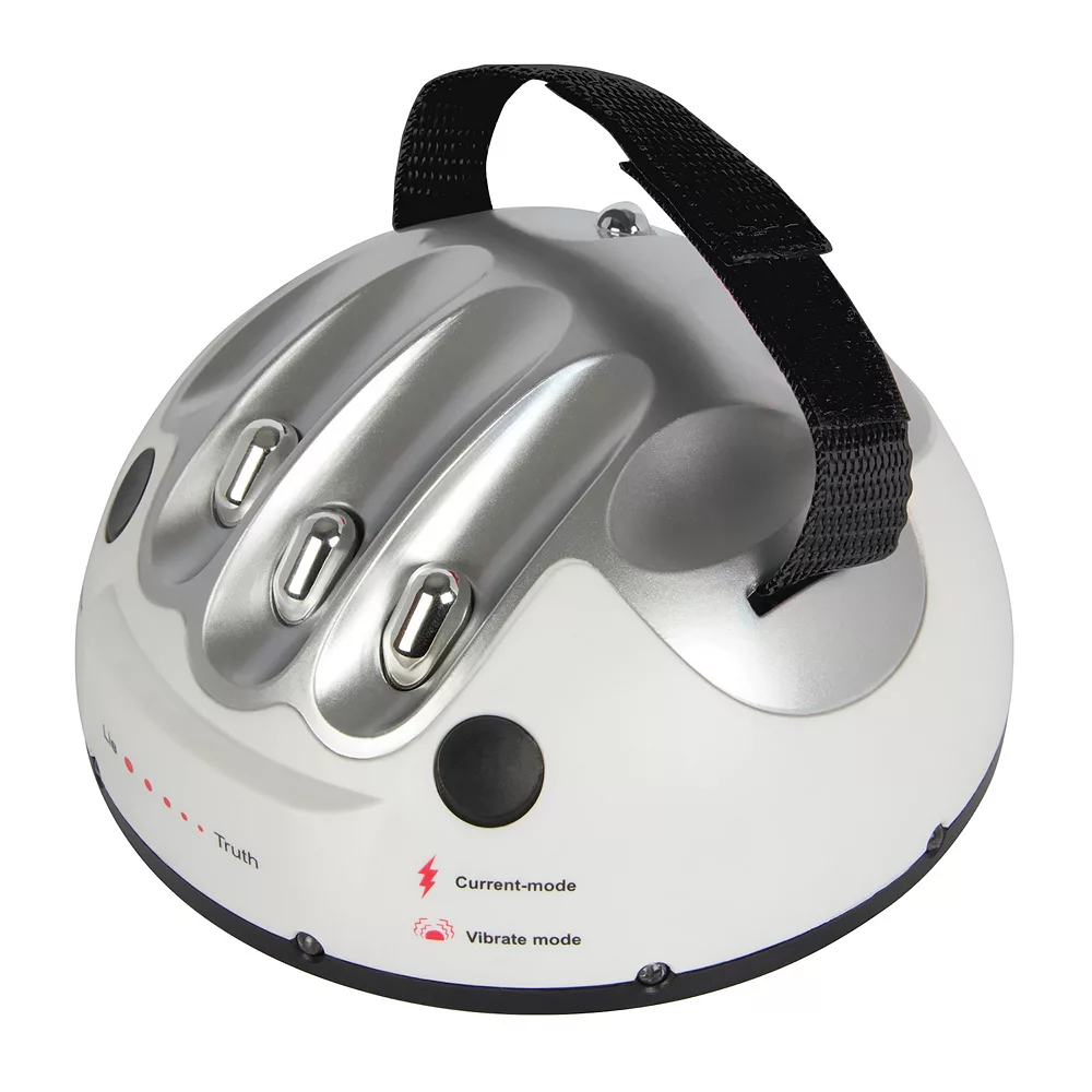 This lie detector catches the most blatant of liars. Ask a yes or no question to determine the truth. The worse the lie, the more it lights up. When all 5 lights are lit prepare for a shock or a buzz!