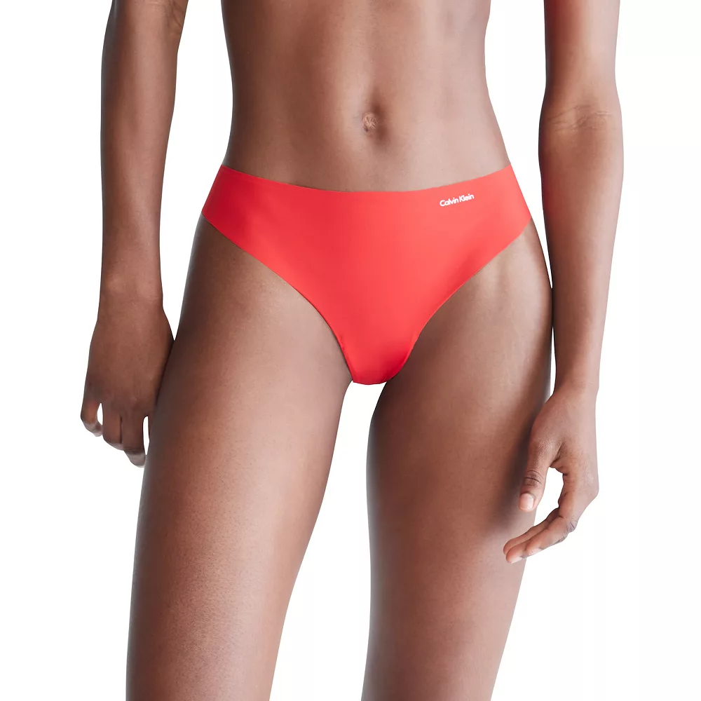 With a seamless finish and flexible fit, this women’s Calvin Klein Invisibles thong panty is crafted from smooth microfiber stretch. Designed with compact logo detailing, a full gusset, minimal rear coverage and clean cut edges, this panty is sure to become a foundation favorite.