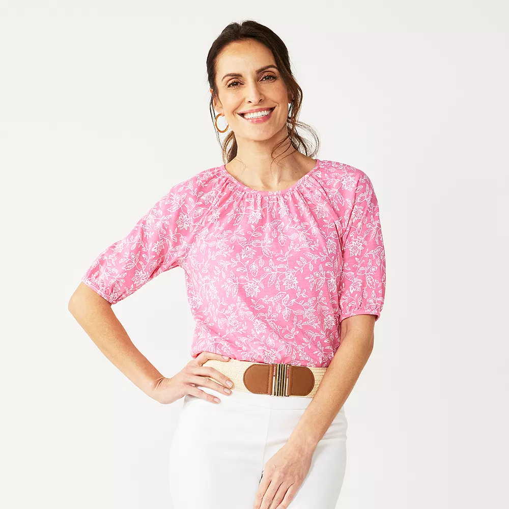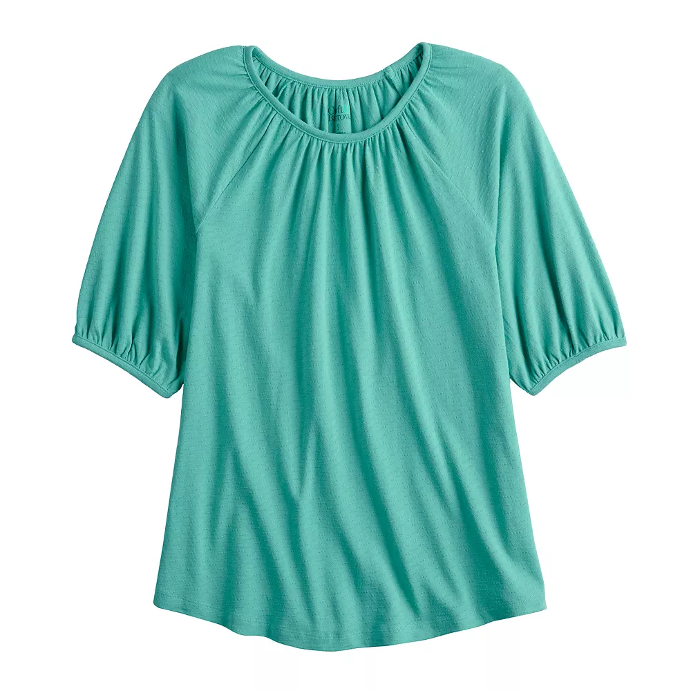 Women’s Croft & Barrow® Gathered Raglan Elbow Sleeve Top