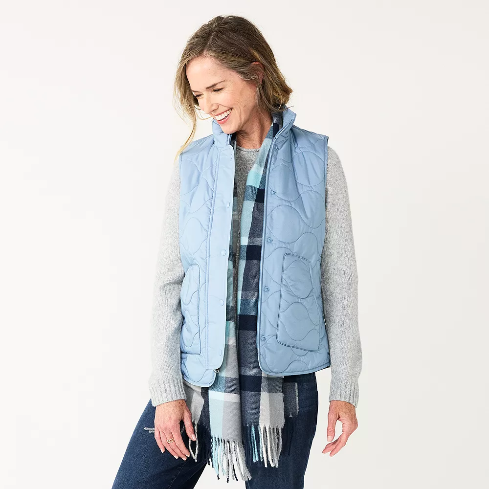 Welcome cold weather with this women’s Croft & Barrow quilted fleece vest, featuring fleece lining.