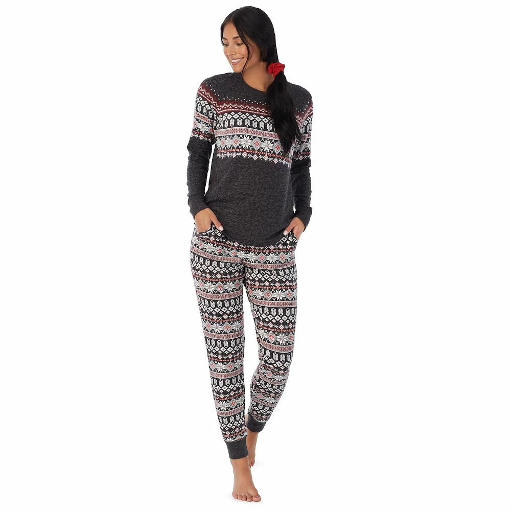 Featuring a cozy brushed sweater knit construction and matching scrunchie, this women’s coordinating Cuddl Duds pajama set makes bedtime even dreamier.