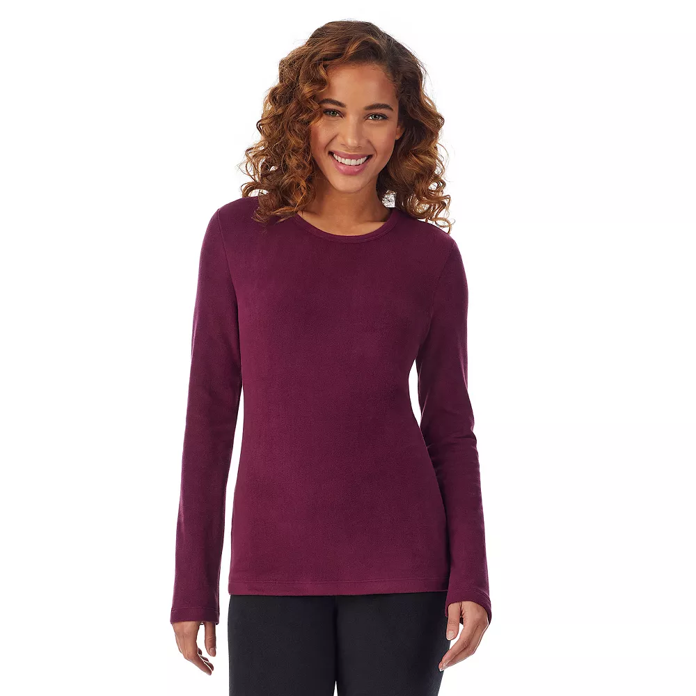 This women’s Cuddl Duds Fleecewear with Stretch thermal baselayer long sleeve crewneck top is the ultimate warm layer, designed for cozy comfort on the coldest days.