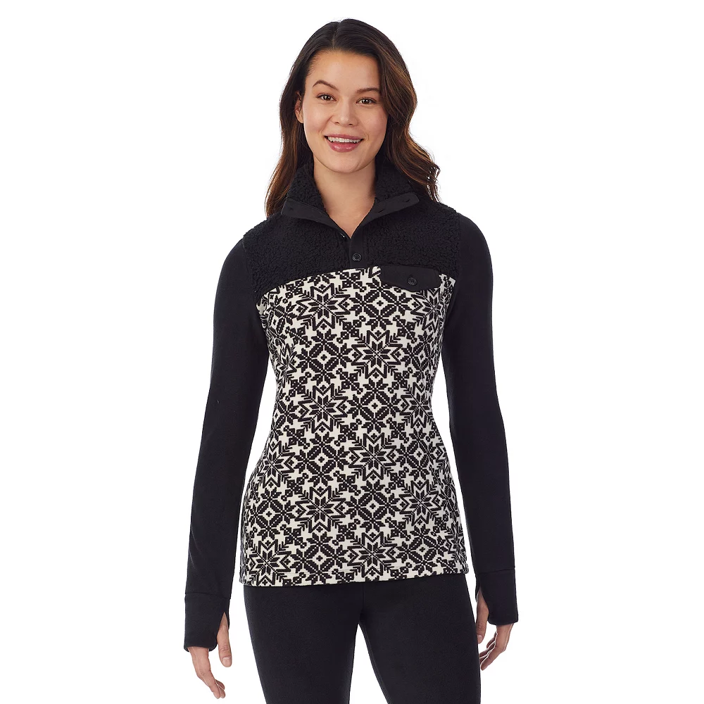 This women’s Cuddl Duds Fleecewear with mock henley top is the ultimate warm layer, designed for cozy comfort on the coldest days.