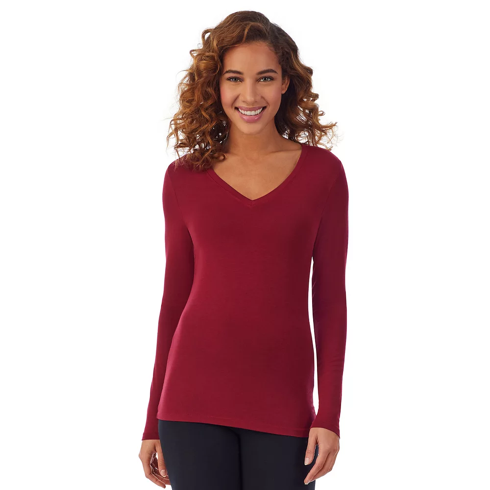 The ideal everyday layer, this women’s Cuddl Duds Softwear with Stretch long sleeve V-neck top is unbelievably soft to the touch and effortlessly stretches with your body for all day comfort.