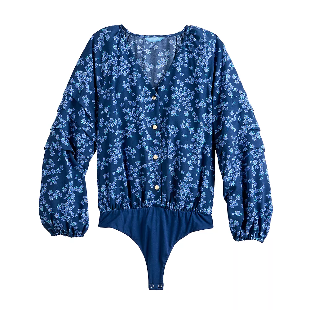 Roll-up in style when you rock this ruffled sleeve women’s bodysuit from DRAPER JAMES RSVP.