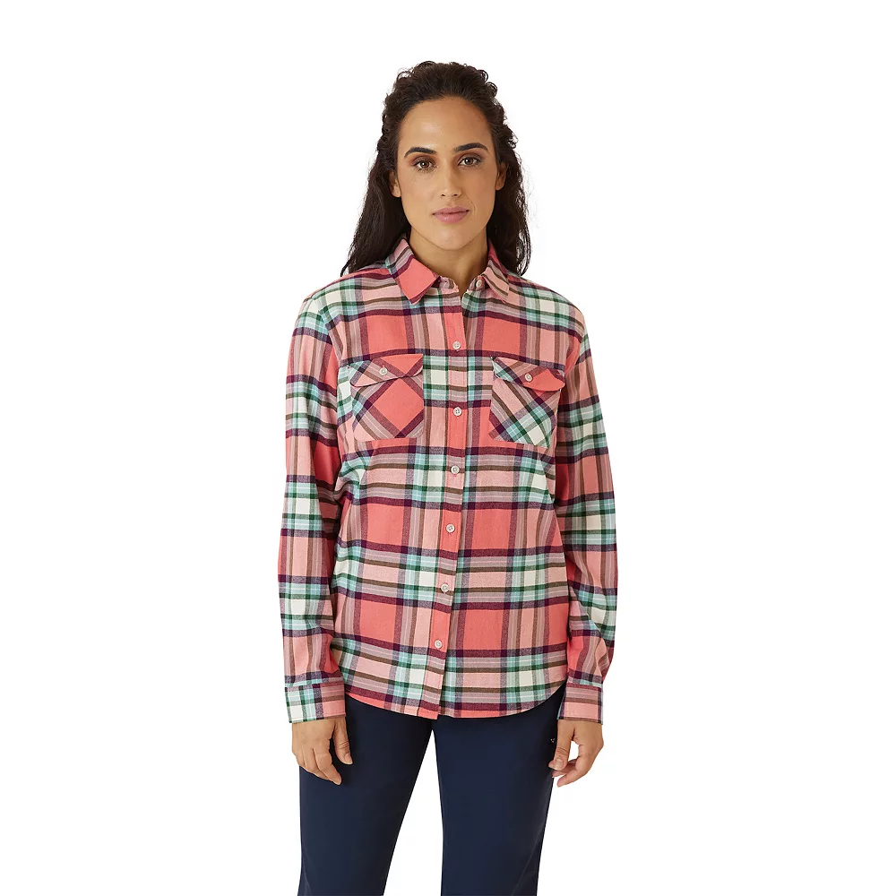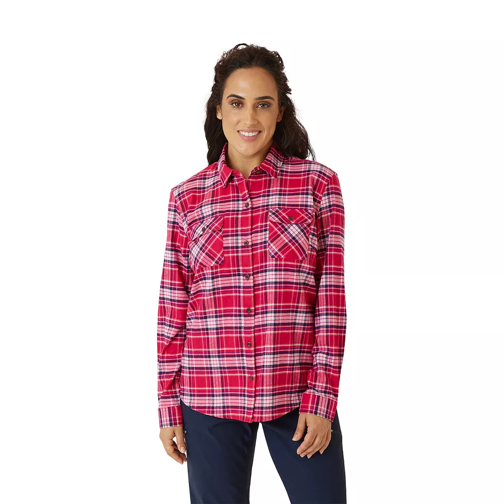 You’ll love the flexible fit and casual feel of this women’s Eddie Bauer flannel shirt.