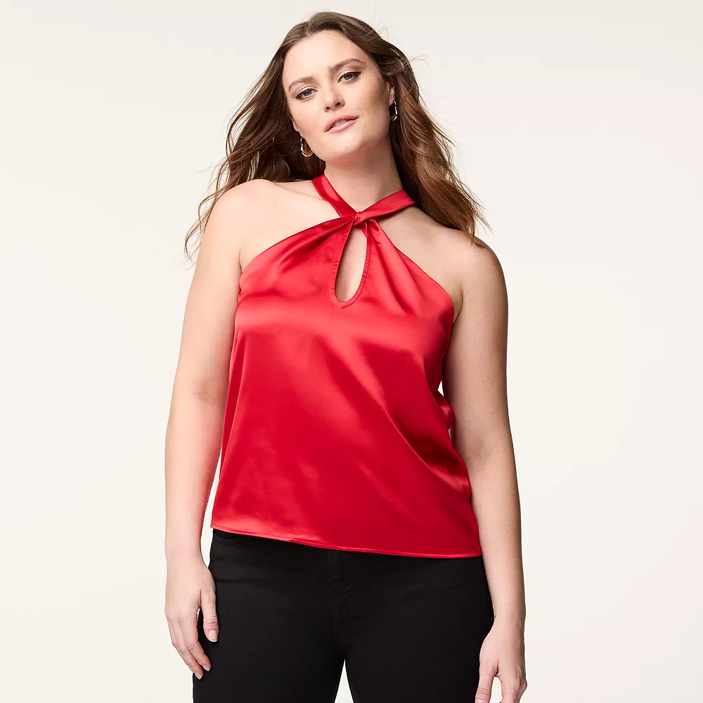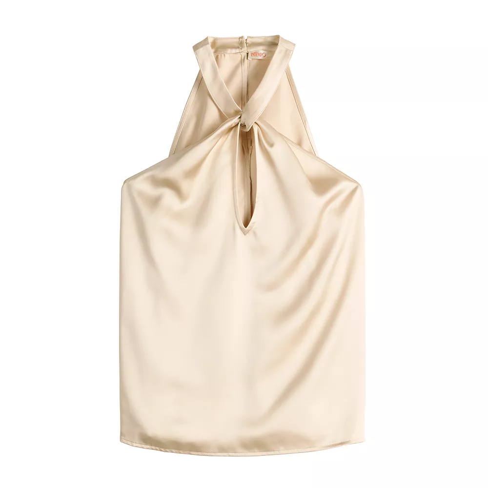You’ll love the flattering halter neckline if this women’s INTEMPO satin top.