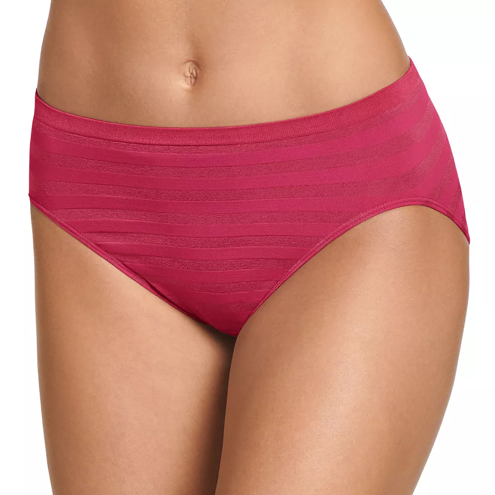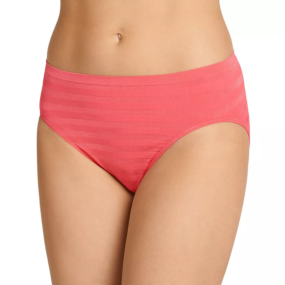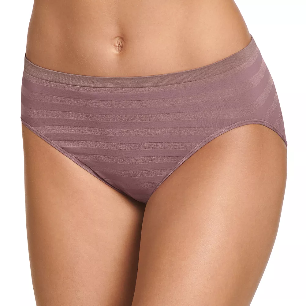 This women’s Jockey Comfies brief features a striped pattern and hi-cut design for underwear you’ll love.