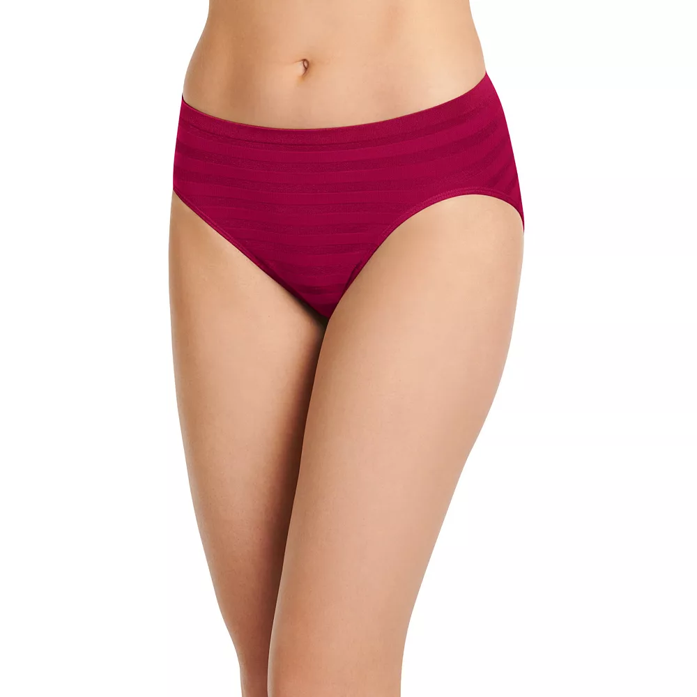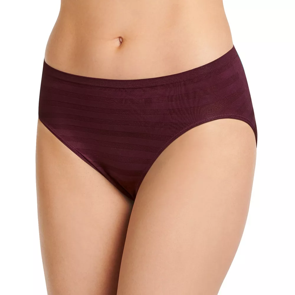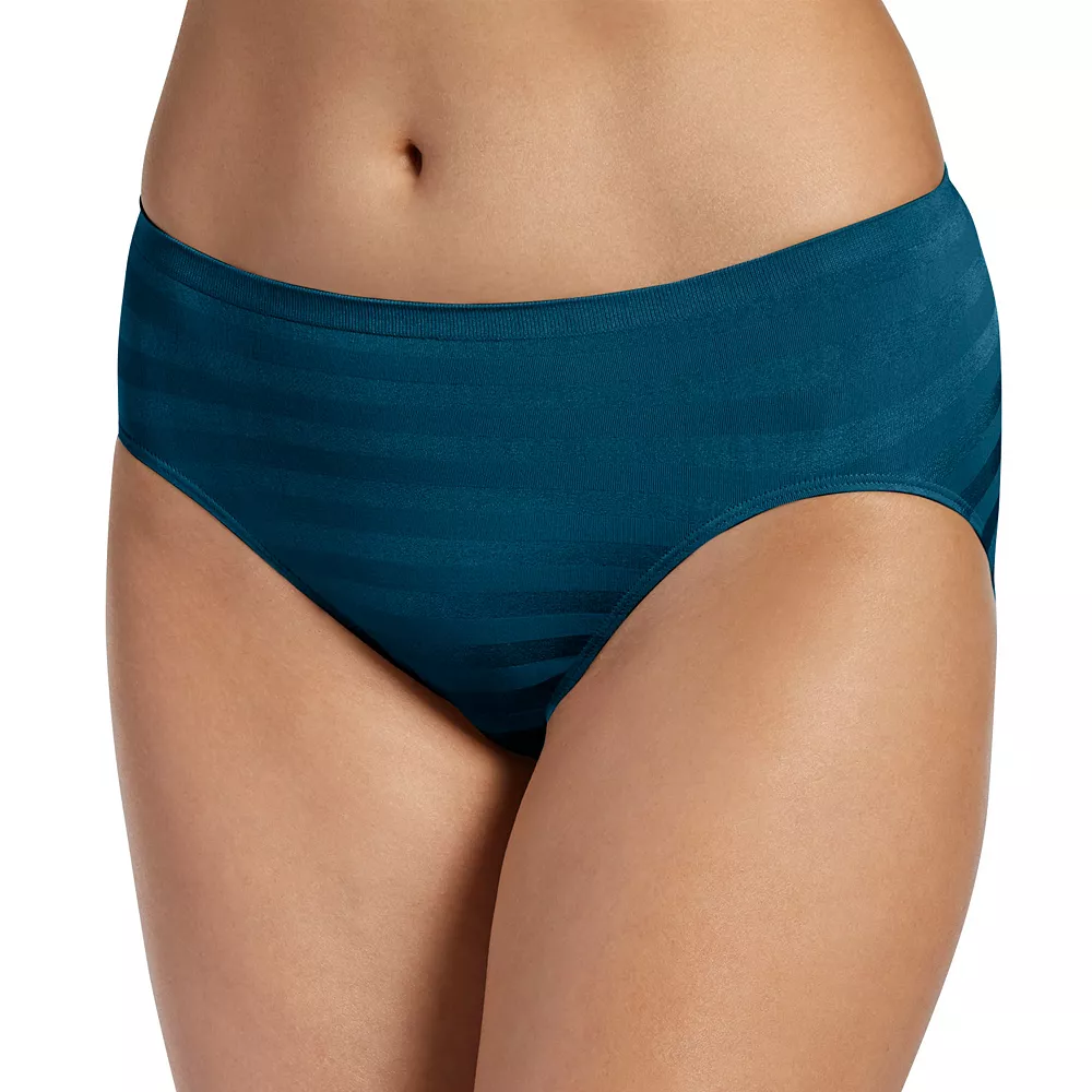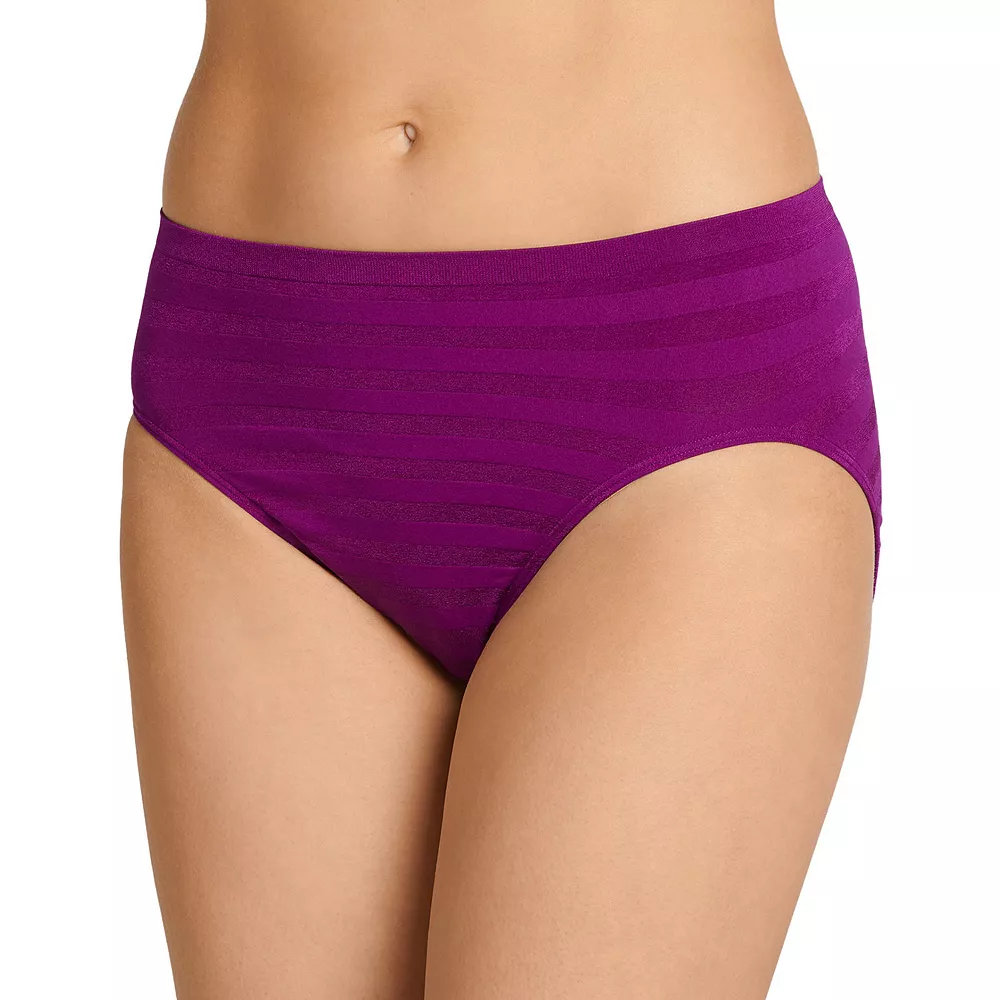 This women’s Jockey Comfies brief features a striped pattern and hi-cut design for underwear you’ll love.