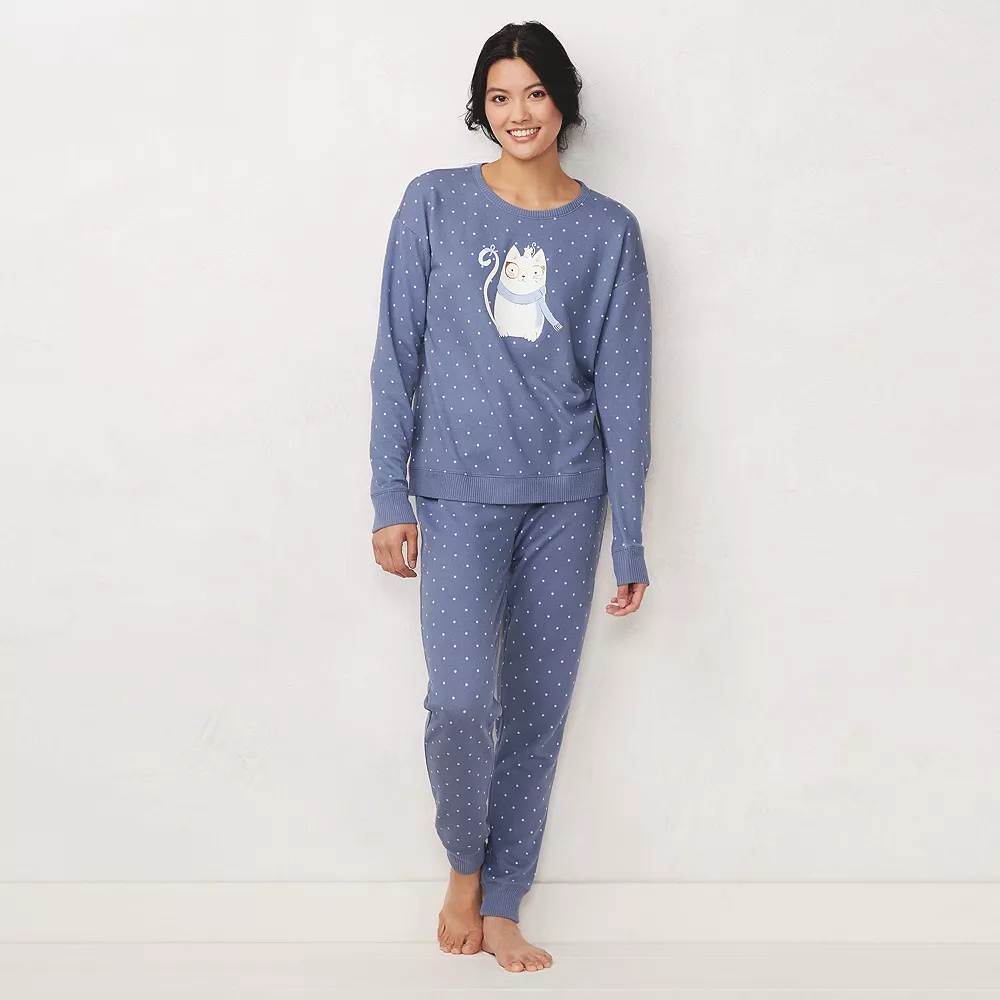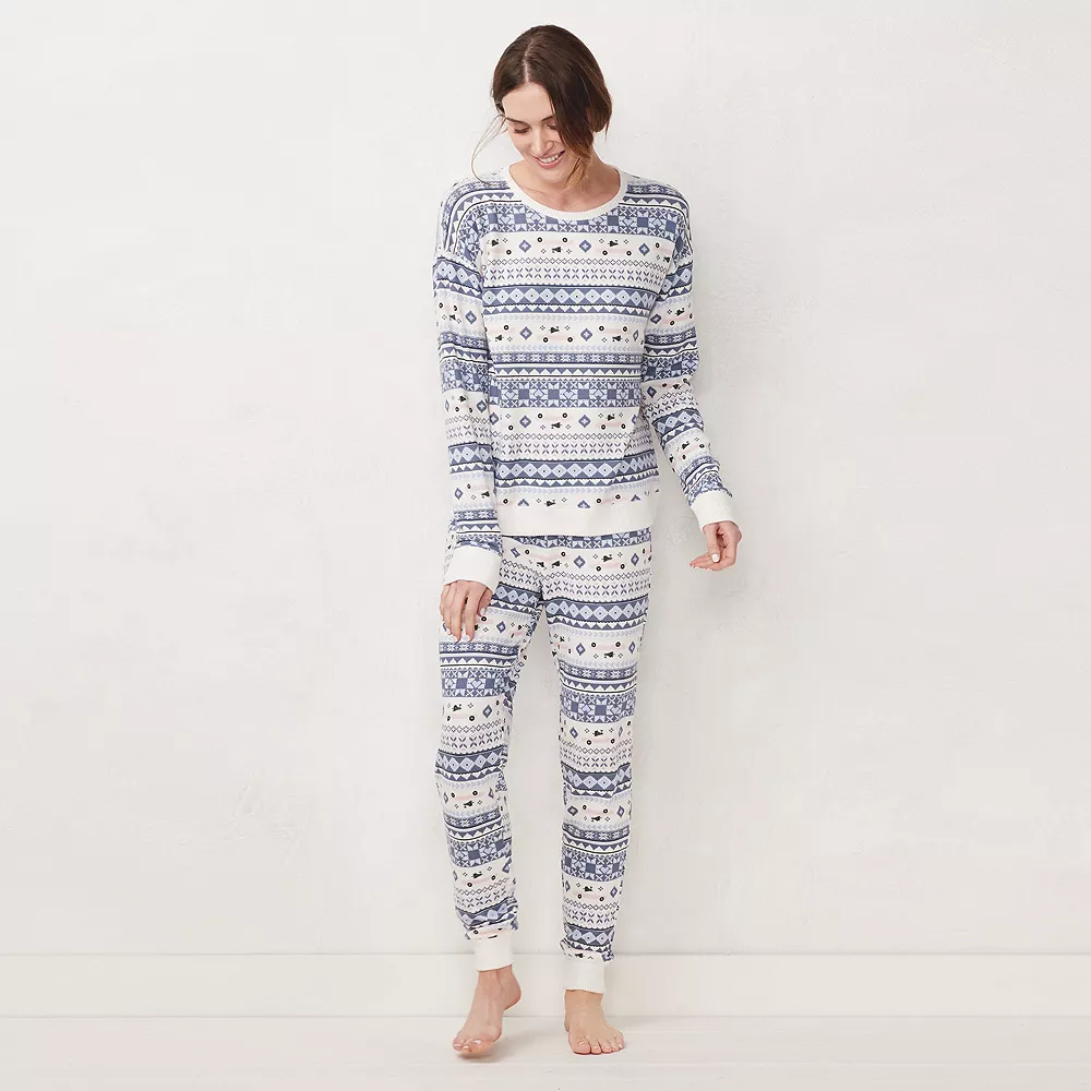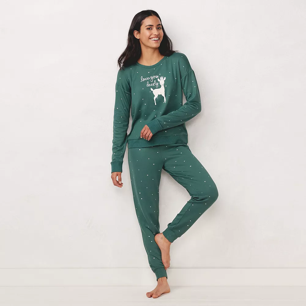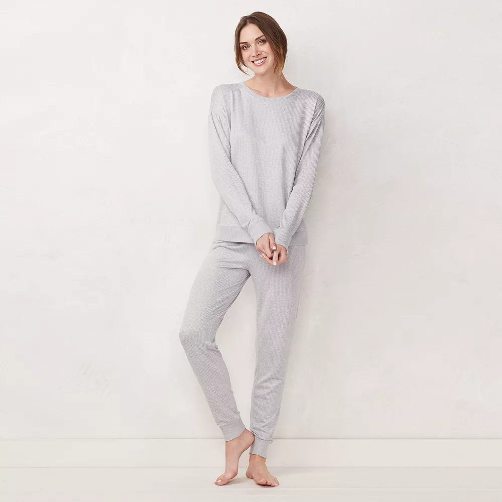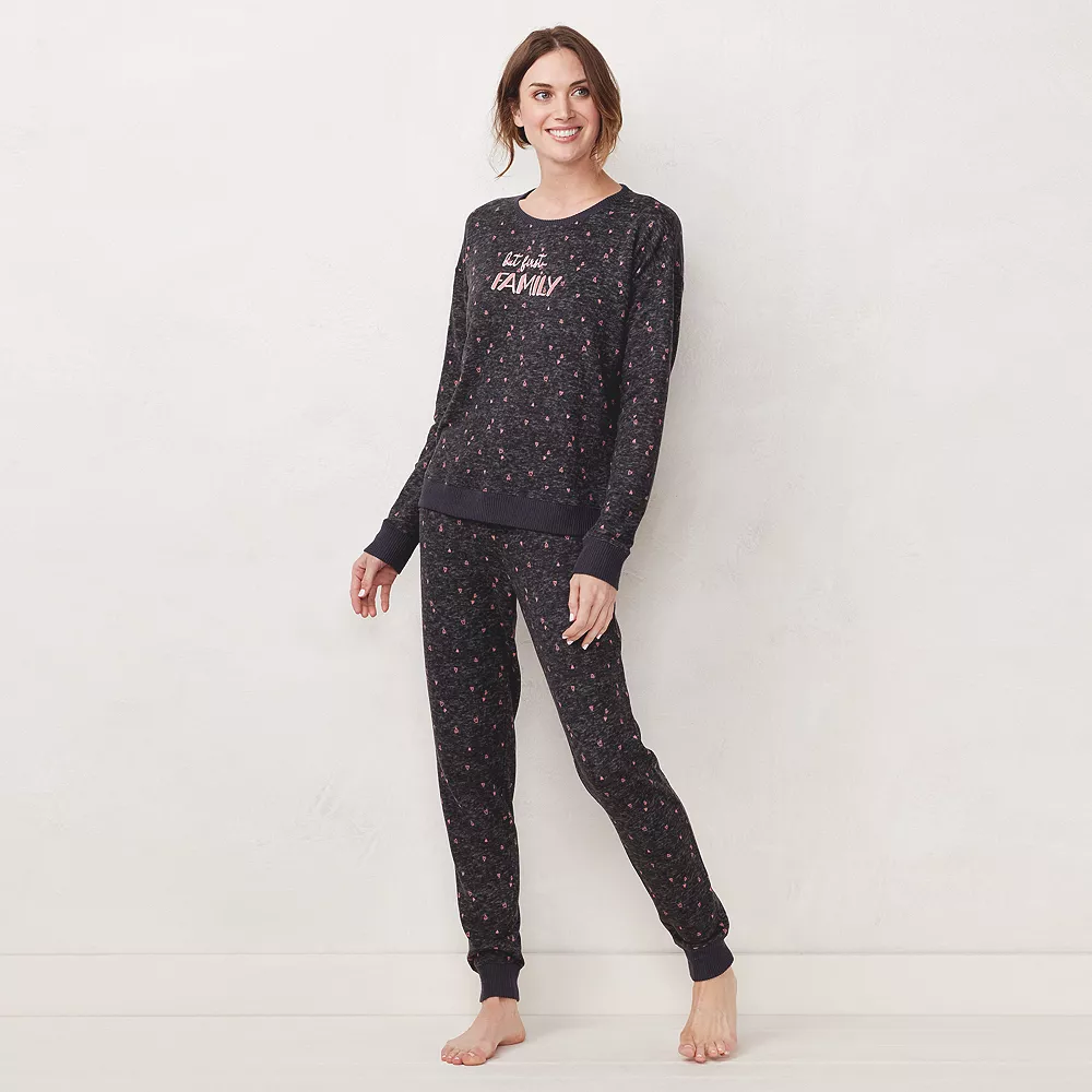 Cozy up in comfort and style with this matching women’s LC Lauren Conrad pajama set.