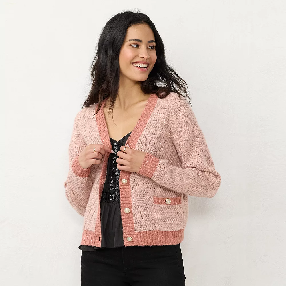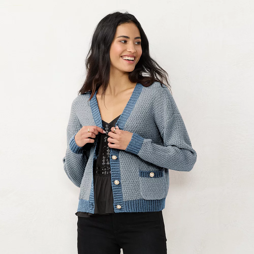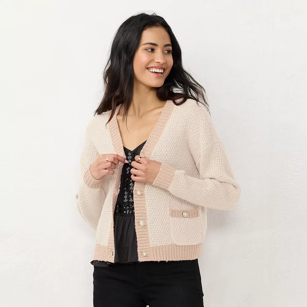 Metallic details add a touch of sparkle to this women’s LC Lauren Conrad v-neck sweater.