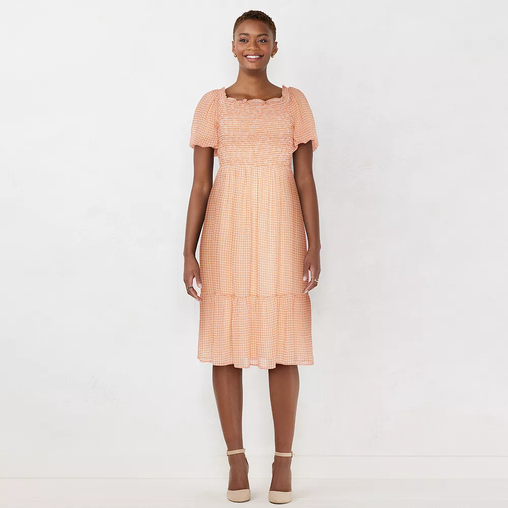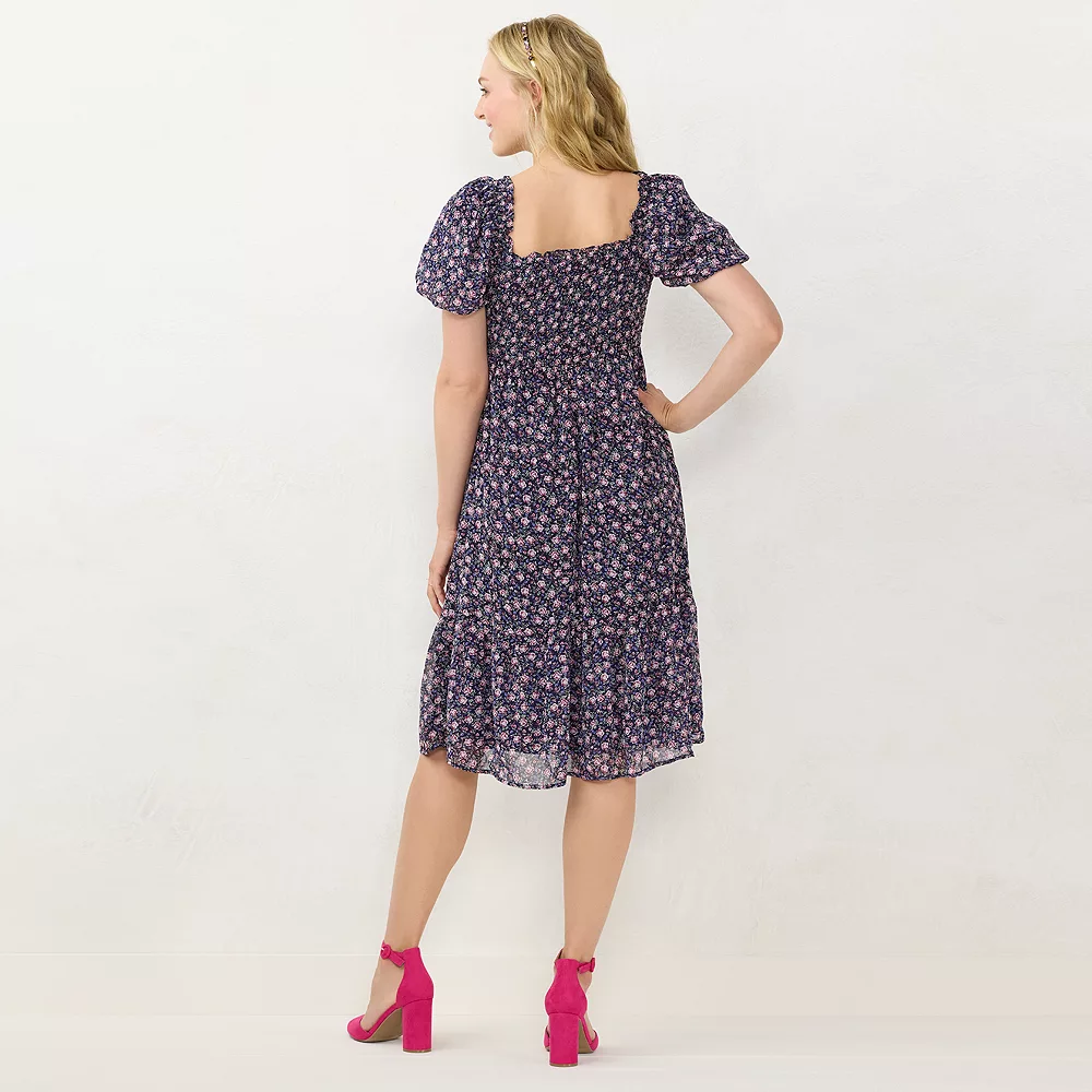 You’ll love the smocked bodice and puff sleeves of this women’s LC Lauren Conrad midi dress.
