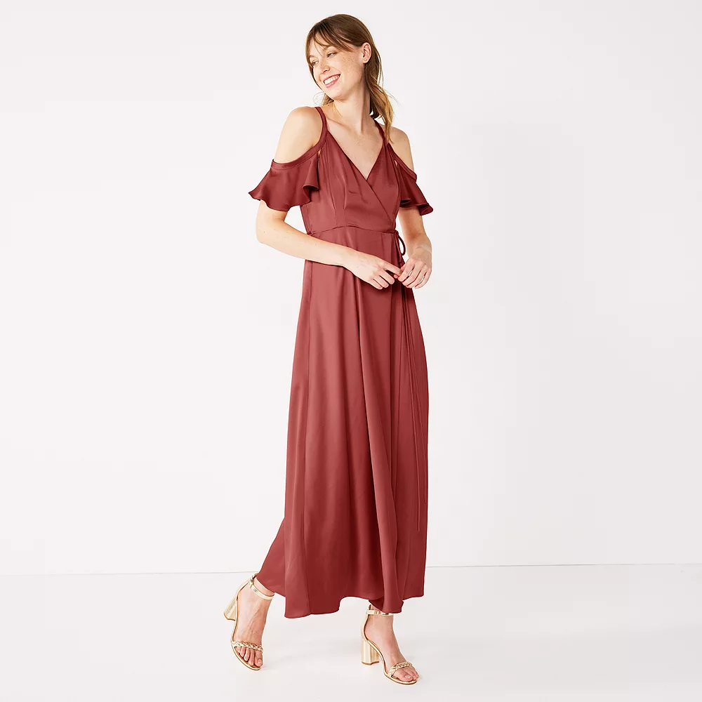 You’ll love the chic spring style of this women’s cold-shoulder maxi dress by Nine West.