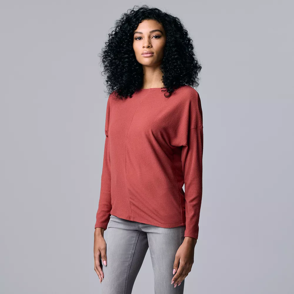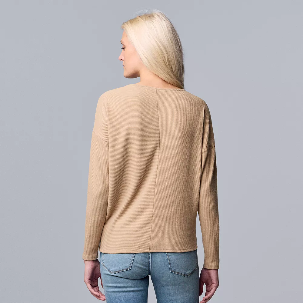 You’ll be cute and cozy all season long in this women’s Simply Vera Vera Wang ribbed top.