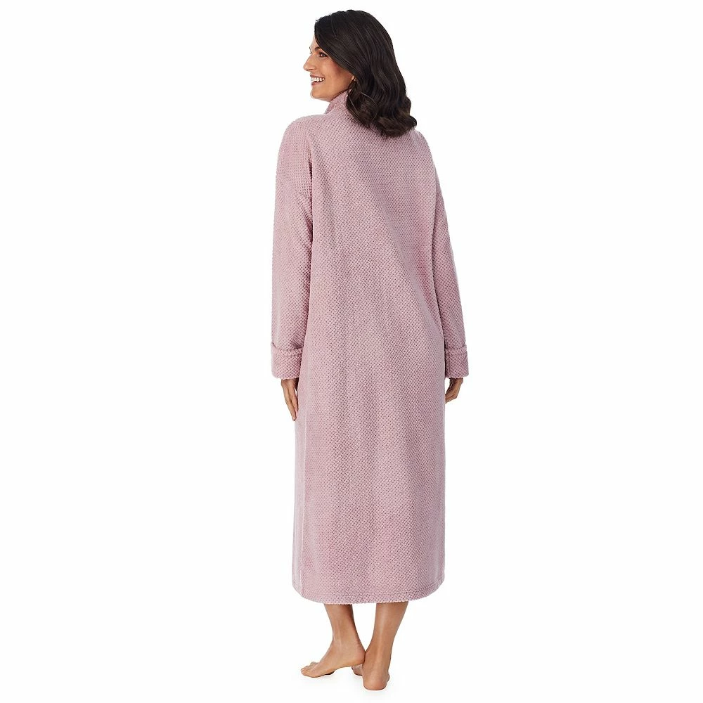 Layer in a luxuriously cozy look with this plush cowlneck zipper robe from Stan Herman.
